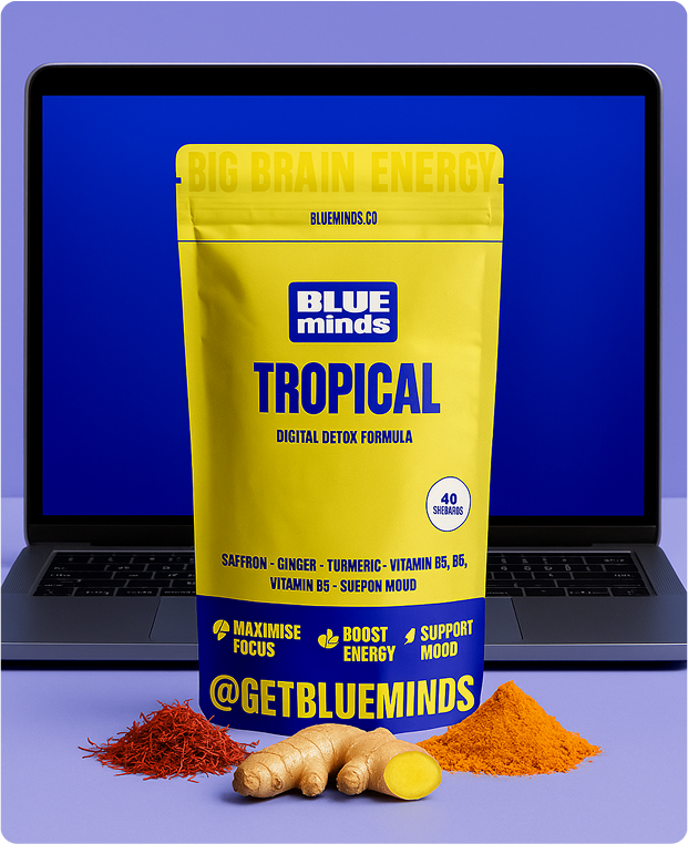 Our smart daily blend combines 11 science-backed ingredients—including fast-acting nootropics, calming adaptogens, essential minerals, and energizing B-vitamins—to fuel focus, mood, and mental stamina in a digital world. Thoughtfully dosed to support dopamine balance, reduce screen fatigue, and sharpen your edge—without the crash